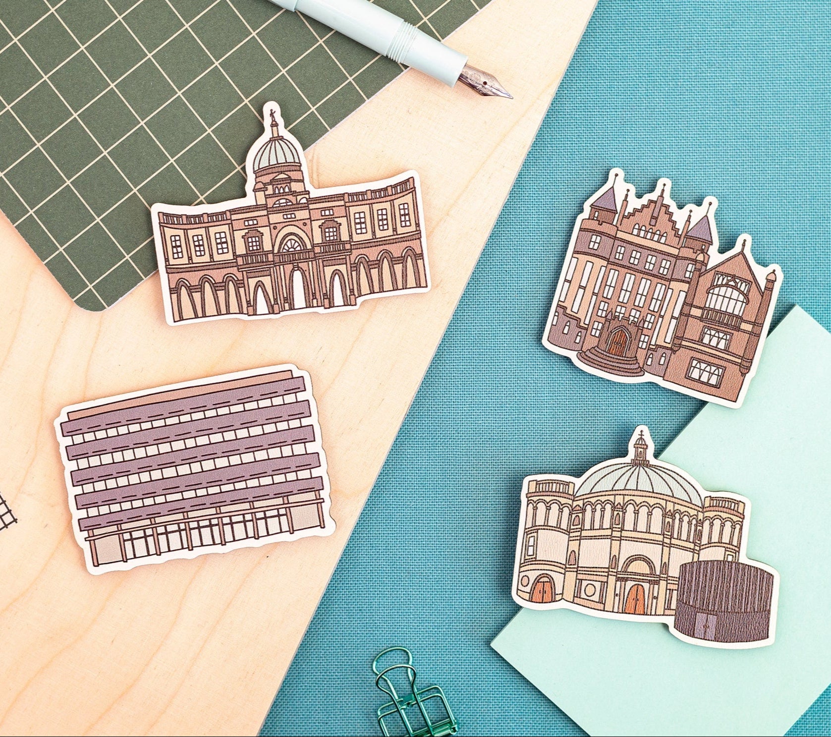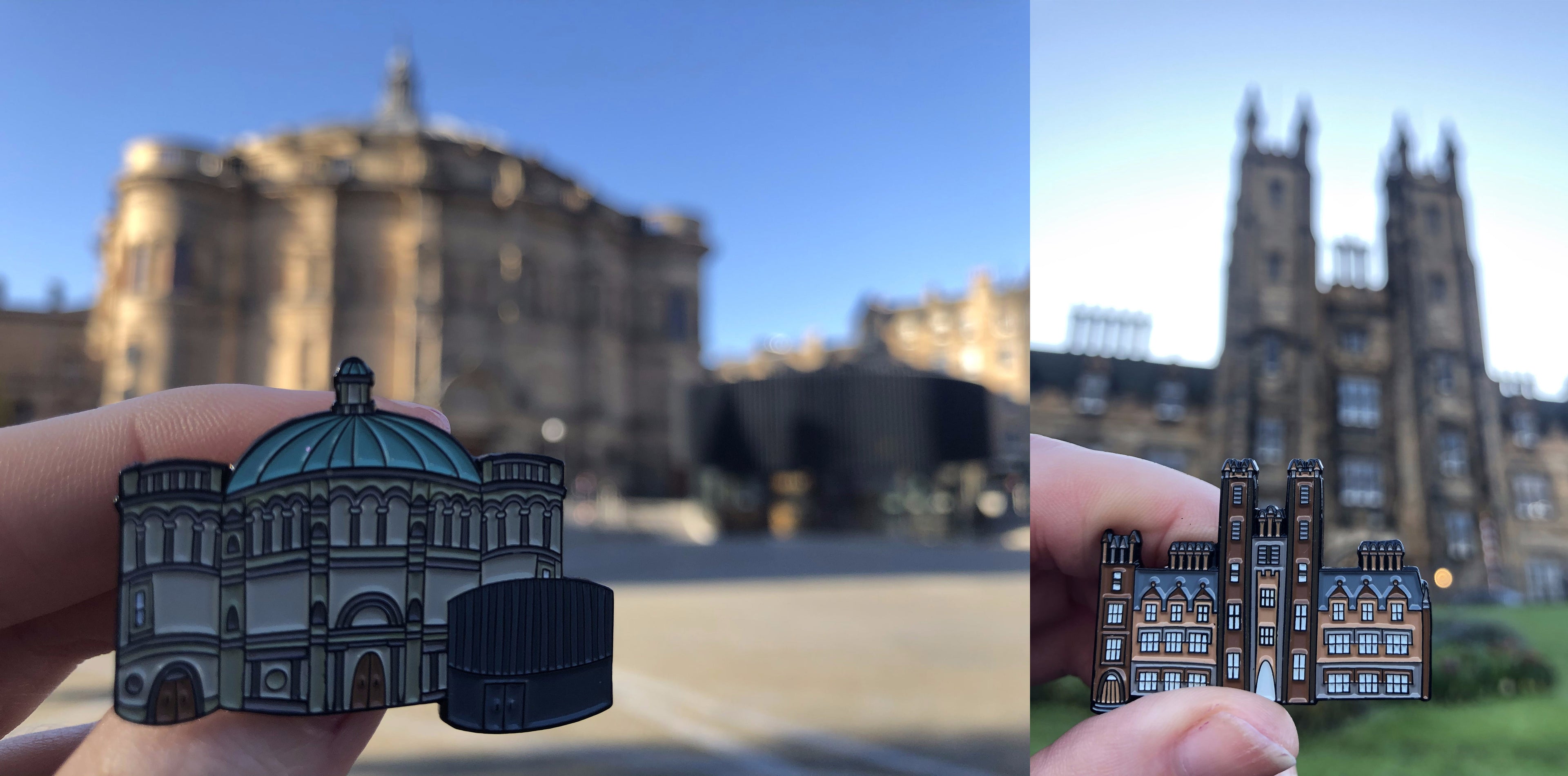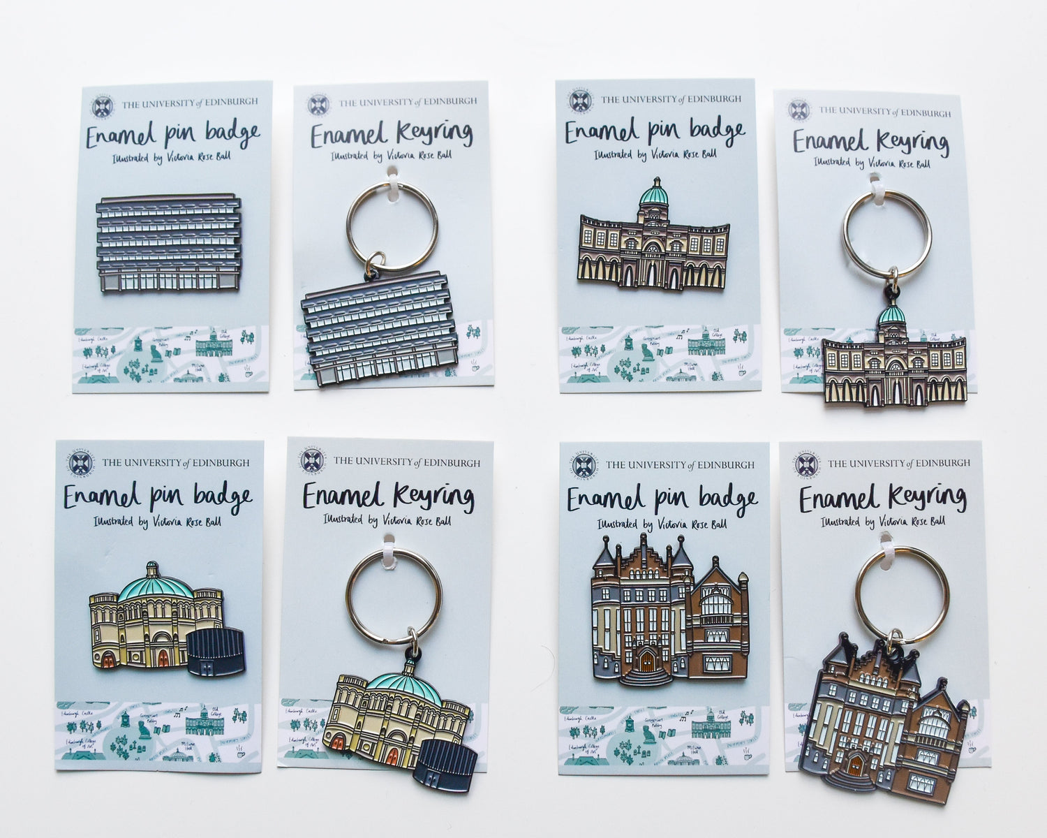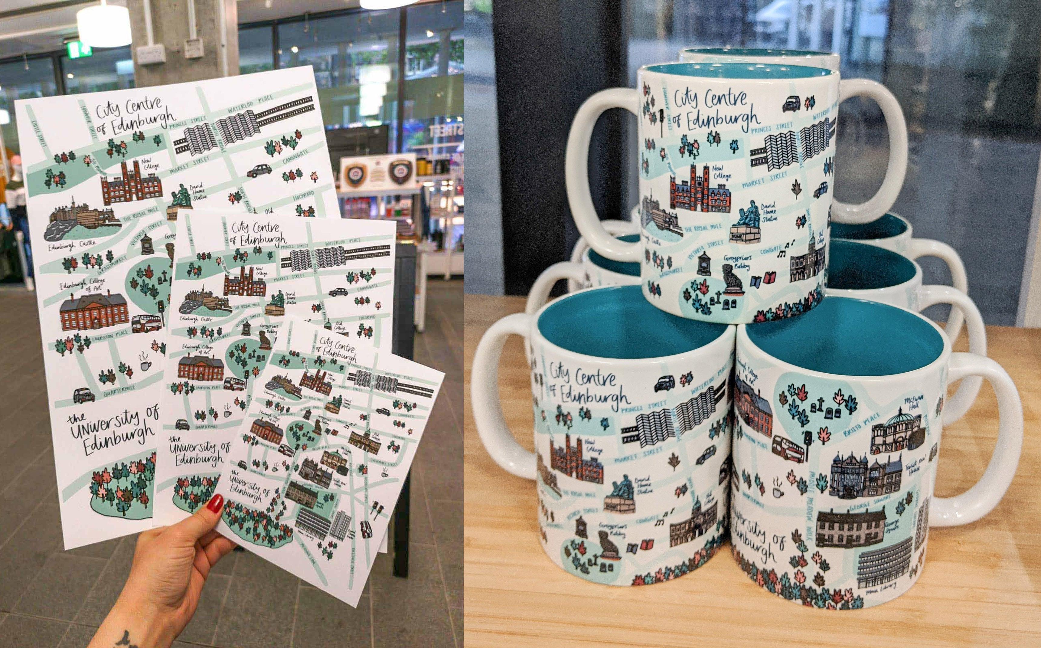 My first product range launched in 2019 in collaboration with the University of Edinburgh Visitor Centre & Gift Shop, creating a map of their central campus for merchandise such as prints and mugs. Following the success of this, we expanded on the range to feature a collection of pin badges, keyrings and wooden magnets - all using illustrations picked out from the original map.