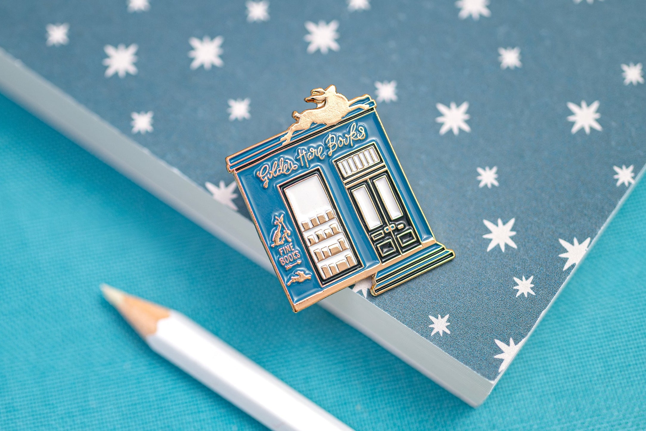 Creating this pin badge in collaboration with local Edinburgh bookshop, Golden Hare Books, was a really exciting challenge - with so many details in the design, yet we chose to keep to reduced colours.