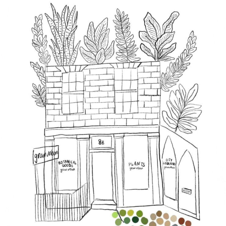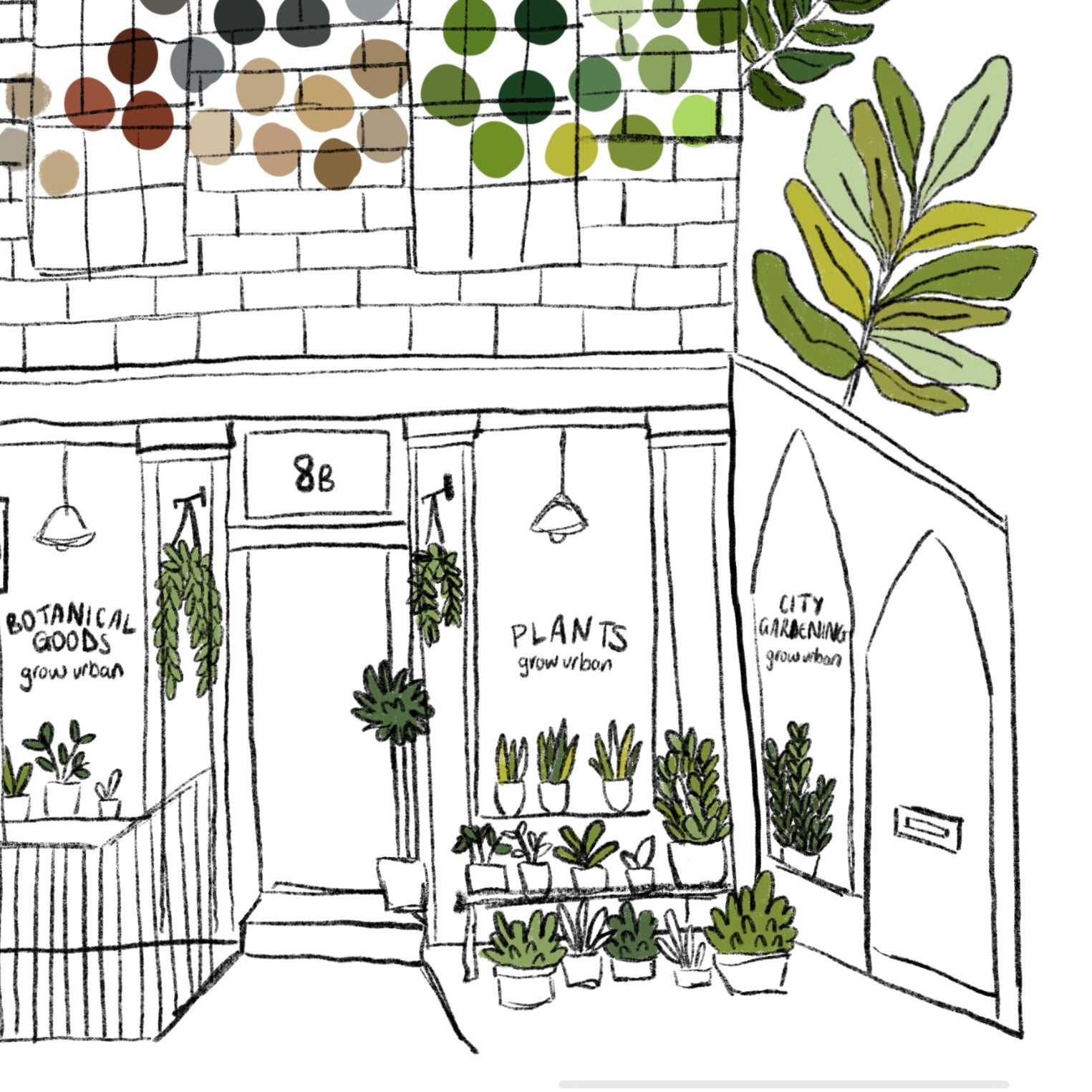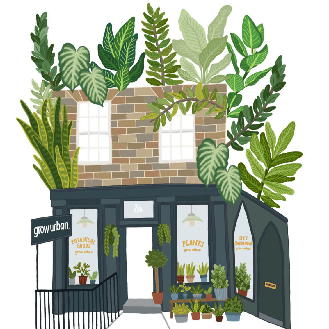 Illustrations created for Edinburgh local business and much-loved plant shop, Grow Urban. The project began with an illustration of their Grove Street store, followed up by the St Vincent Street location a couple of years after. The illustrations have been used for marketing materials and merchandise.