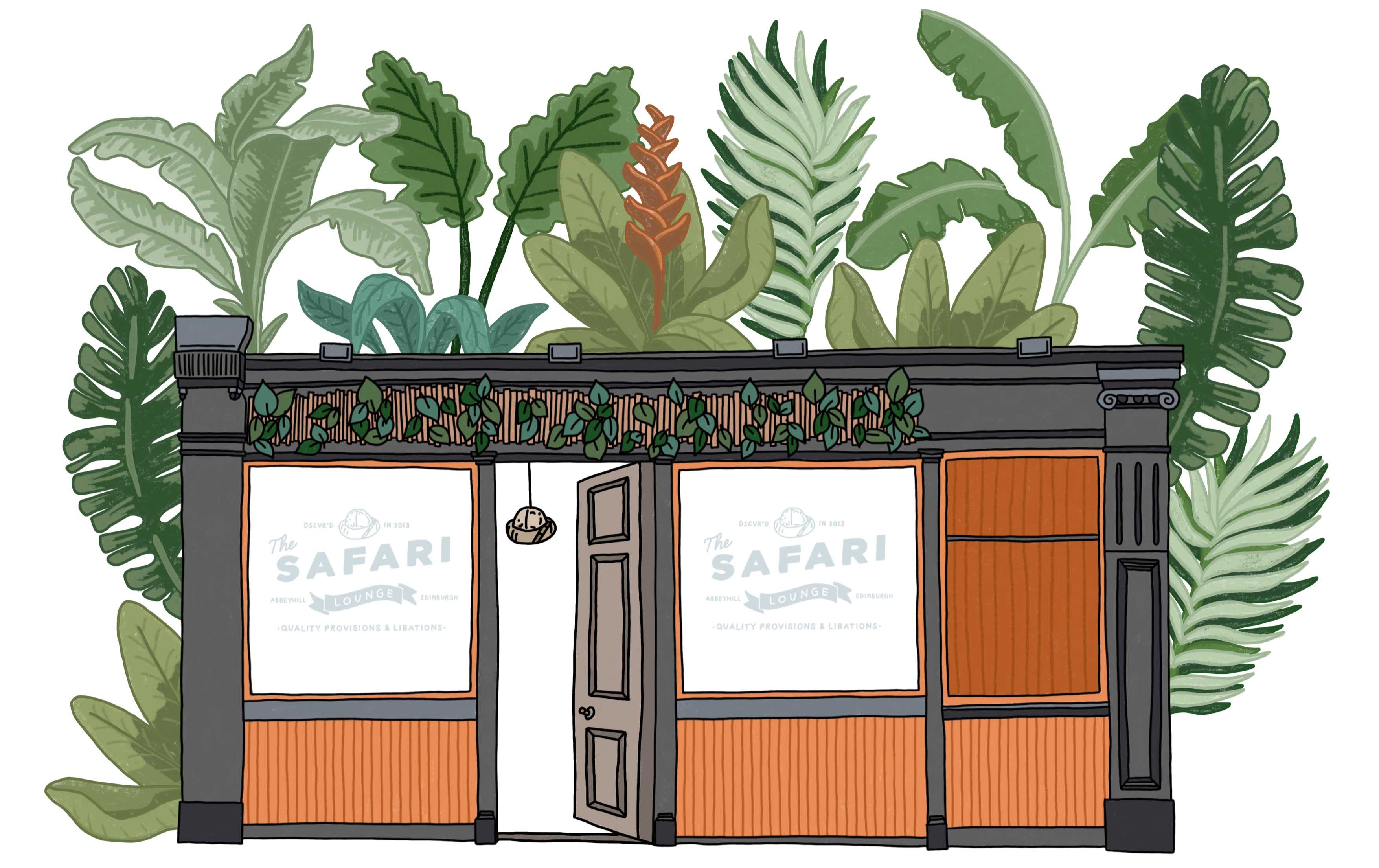 Illustration created as a commemorative piece for a private commission. The brief required a detailed illustration of the shop front, along with typical jungle leaves around the outers of the illustration to give a sense of place and replicate the jungle vibe as inside the bar.