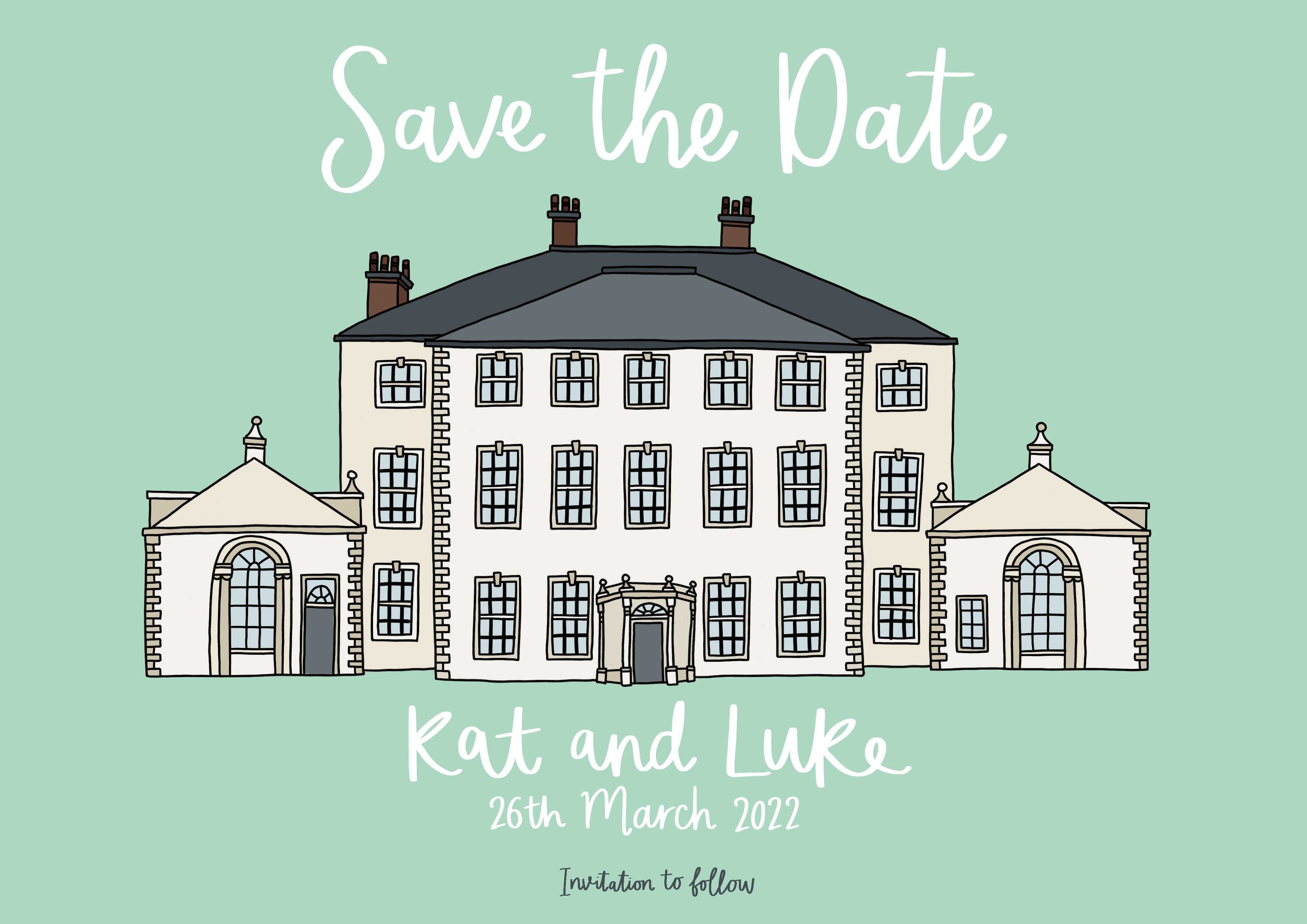 What an honour to create wedding stationery for two of my best friends! The colour of the day was this gorgeous mint green, which featured throughout the save-the-dates, wedding invitations and the table plan. The focus for the stationery was to celebrate the chosen venue and keep the design minimal - letting the illustration speak for itself.