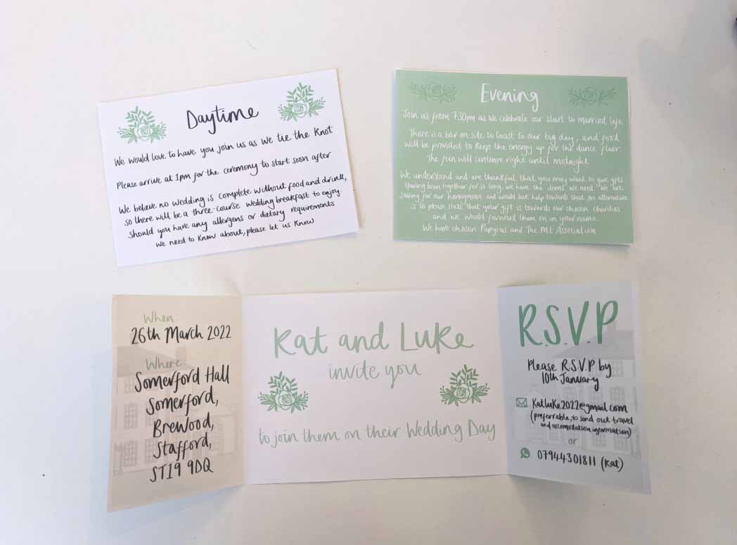“We commissioned Victoria to design our wedding invitations and couldn’t have been happier with the result. From start to finish, Victoria was fantastic to work with, really listening to our ideas and was happy to make any (very minor!) tweaks. The invites have really set the tone for our special day and we consider ourselves very lucky to have a bespoke piece of artwork by Victoria.”