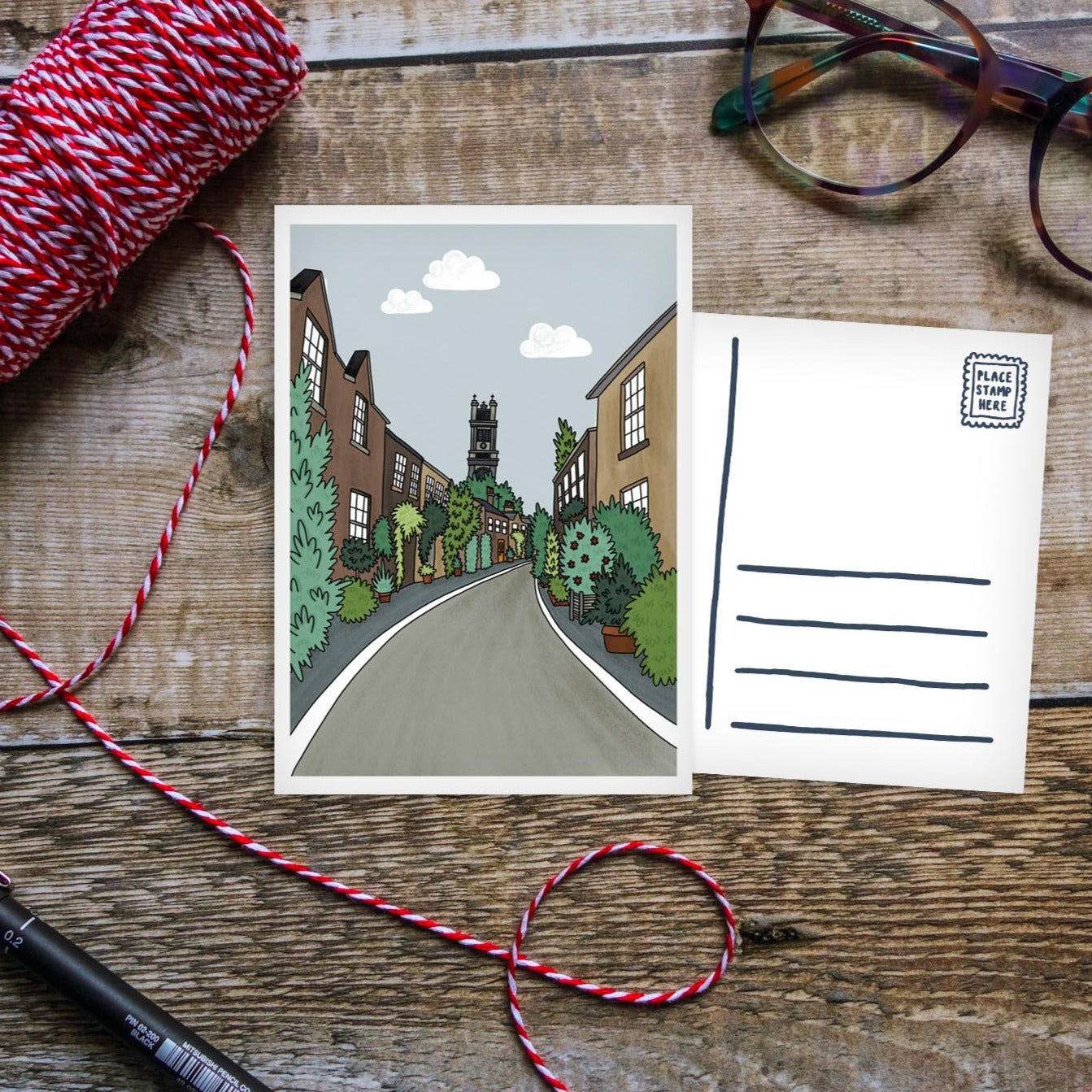 Postcard featuring a full colour illustration on the front, leaving a blank space for your message and address on the reverse. Digitally printed onto high quality uncoated card and supplied plastic free. Designed and printed in the UK.