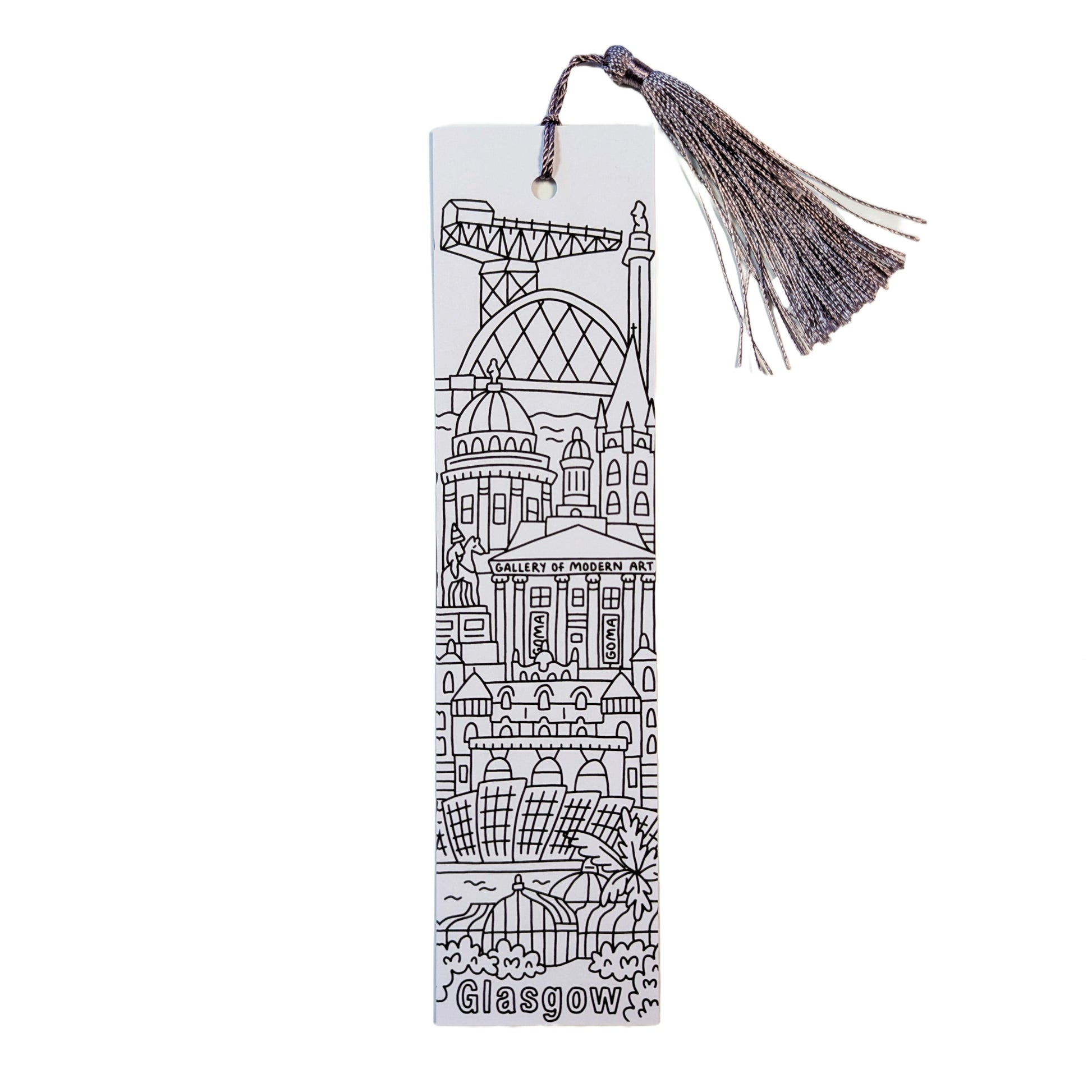 Bookmark featuring outlines of Glasgow's most loved attractions, ready for you to bring to life with colour! Printed onto premium uncoated card (perfect for pens or pencils!) and includes a silk tassel. Supplied plastic free, inside a paper envelope.