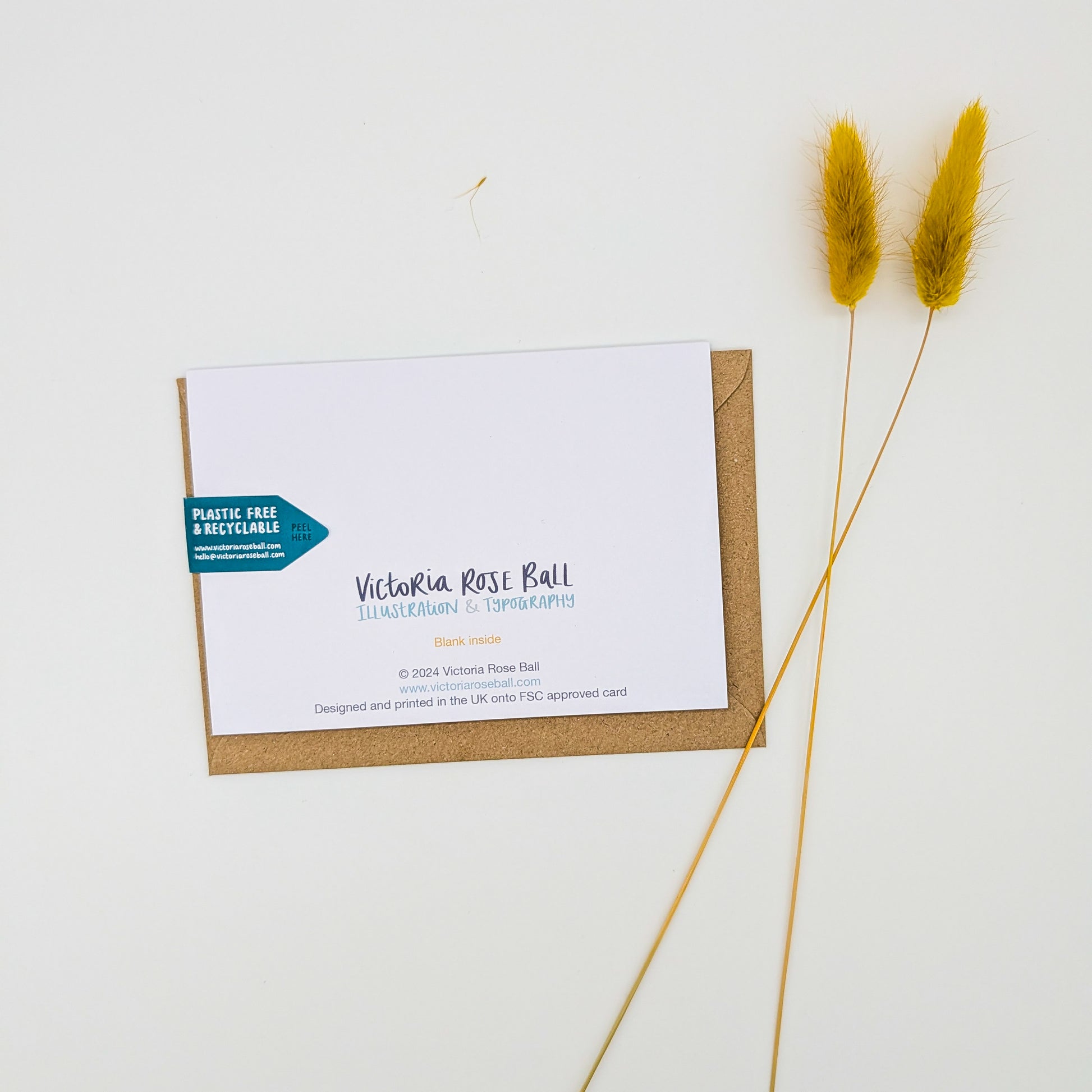 Featuring a colourful digitally-drawn illustration of Glasgow on the front and Victoria Rose Ball logo on the reverse. Each card is A6 in size when folded and printed onto a premium 300gsm smooth card that is perfect for writing on. Blank inside for your own message.