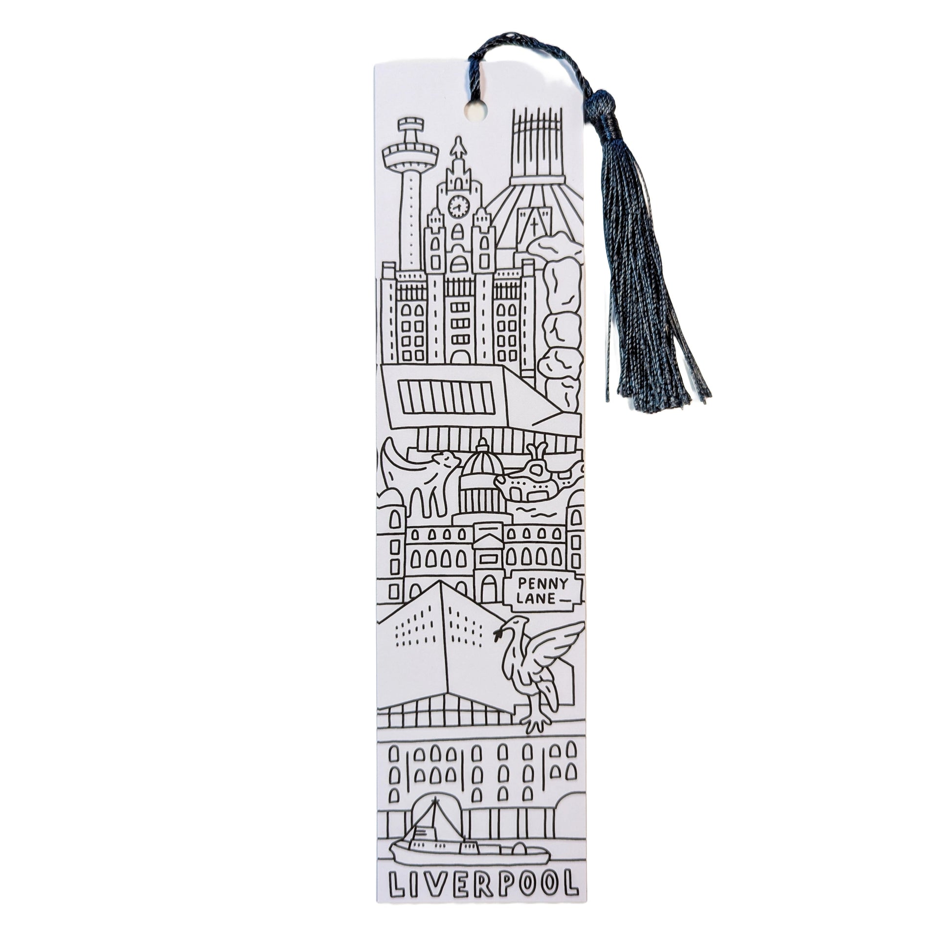 Bookmark featuring outlines of Liverpool's most loved attractions, ready for you to bring to life with colour! Printed onto premium uncoated card (perfect for pens or pencils!) and includes a silk tassel. Supplied plastic free, inside a paper envelope.