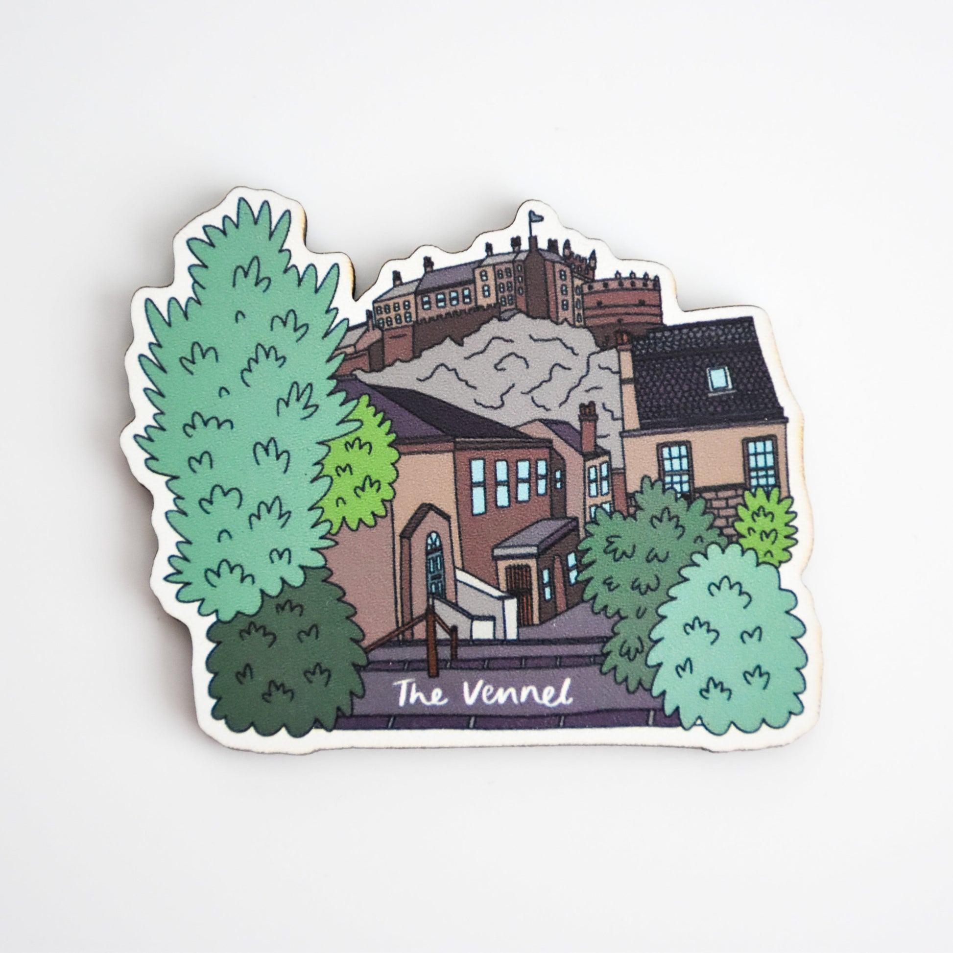 Sustainably sourced wooden magnet, digitally printed illustration and laser cut to shape. Approximately 5x8cm in size with a magnetic strip on the back.